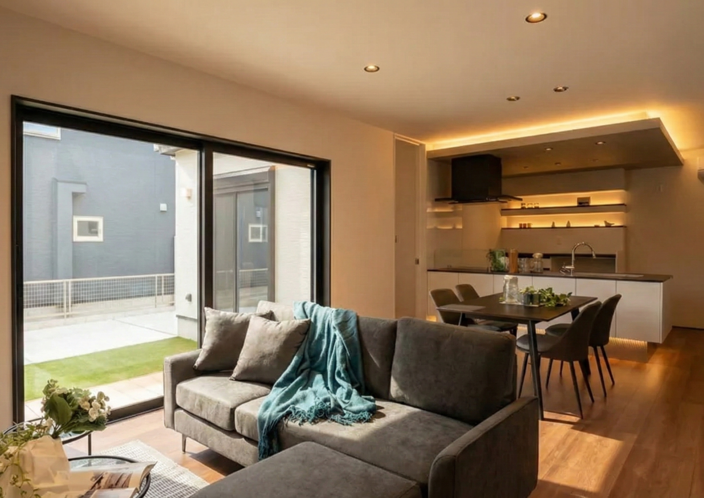 家族がリビングでくつろぐ時間も、夜の休息も、ワンフロアで完結します。