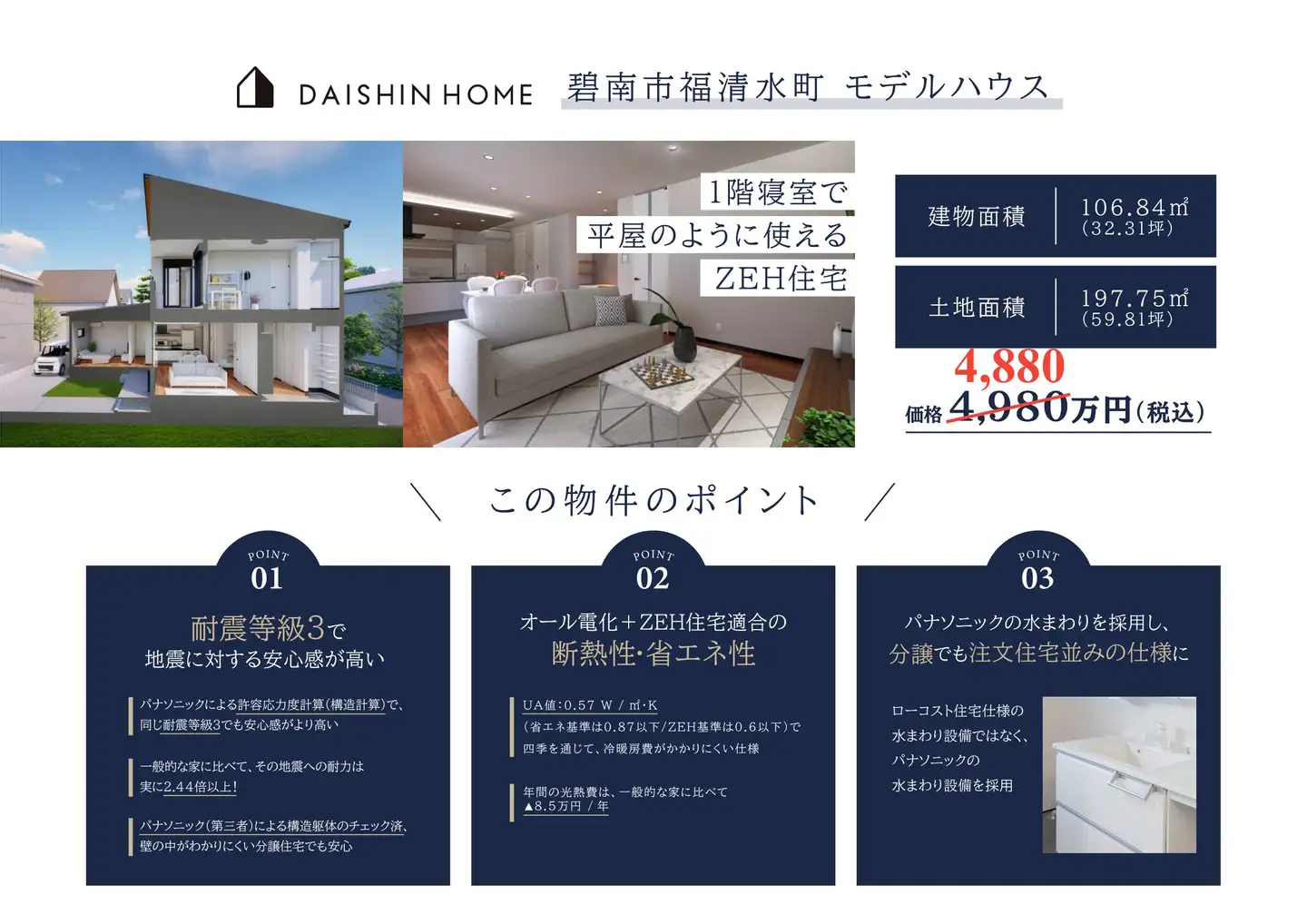 1階に主寝室を配置した間取りは、小さなお子様がいるご家庭にも、将来のセカンドライフにもフィット。